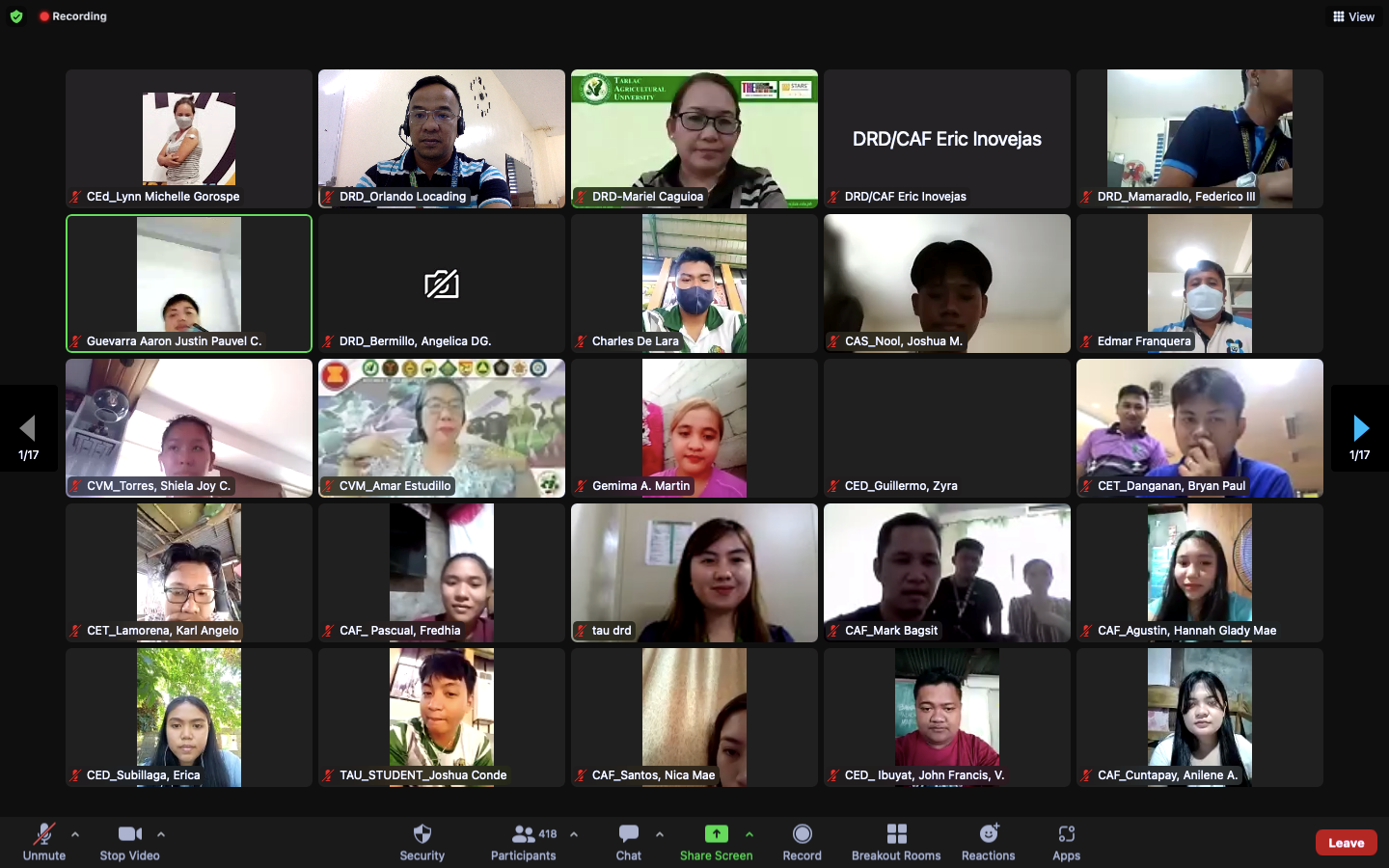 To educate students about the policies and guidelines of Tarlac Agricultural University in doing student research, the Department of Research and Development (DRD) launched the “Student Orientation on DRD Policies and Guidelines” webinar last January 20, 2023, via Zoom.