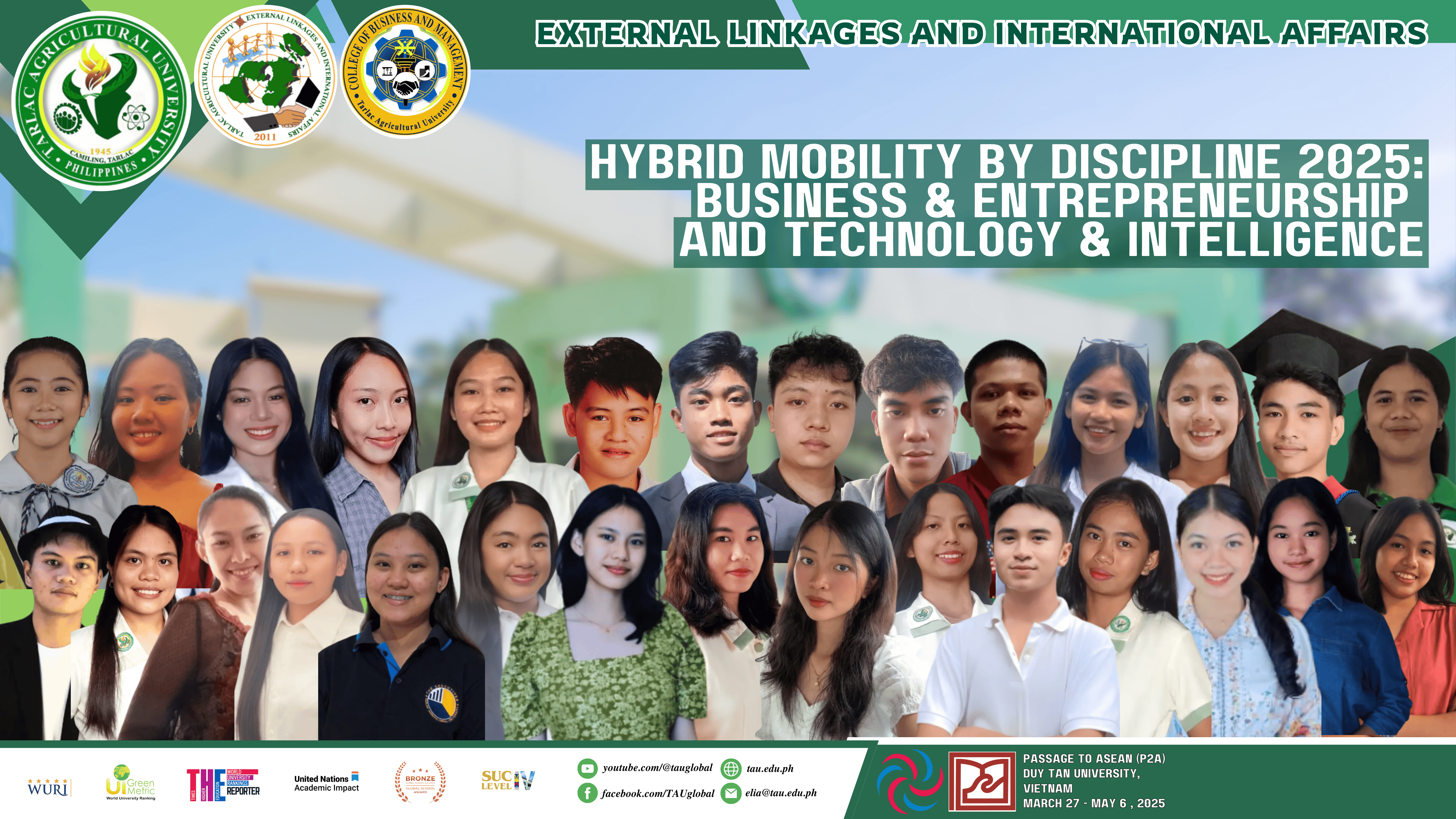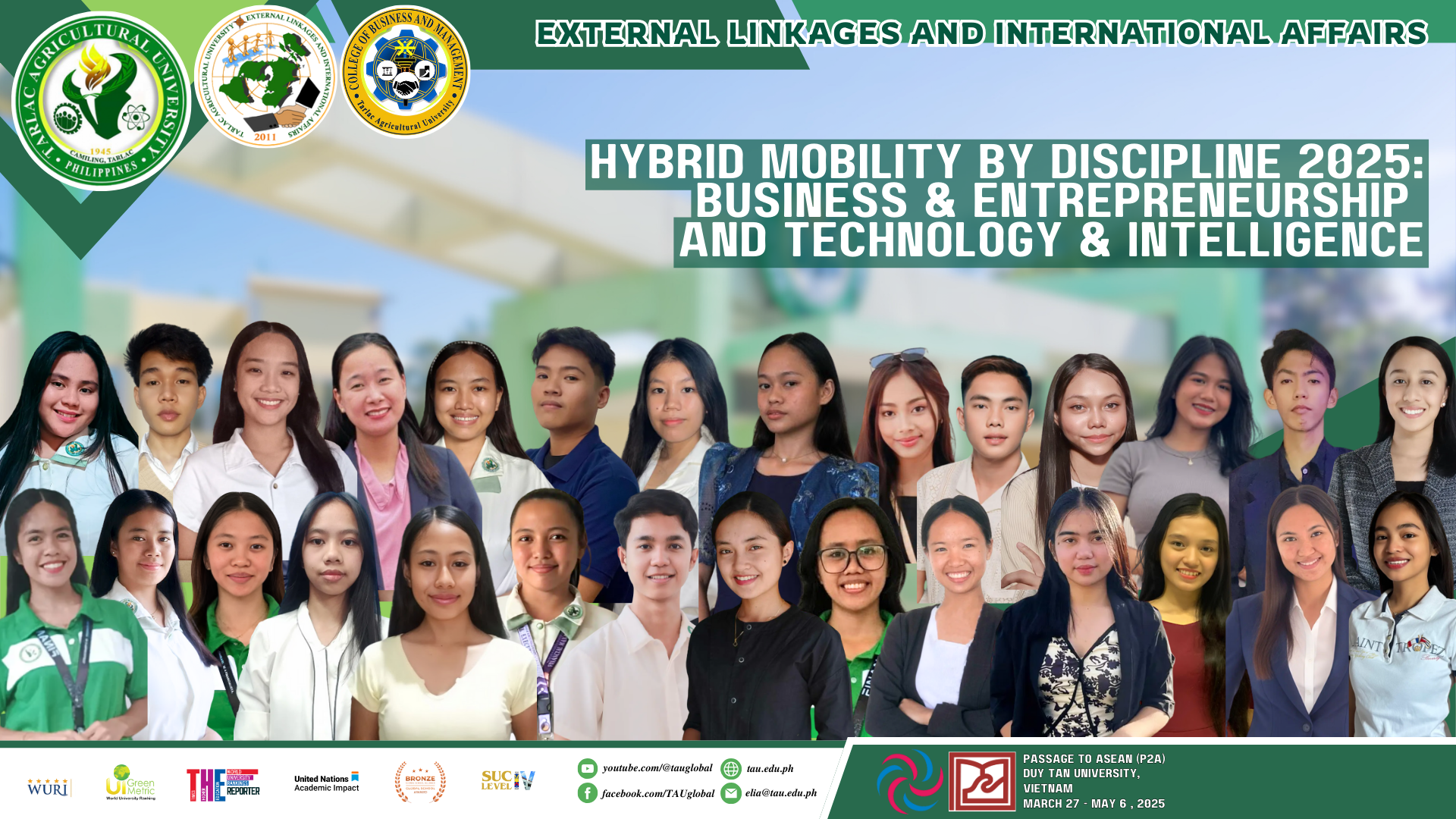 TAU - ELIA proudly announces the engagement of Ms. Charlyn L. Banno, a faculty member from the Tarlac Agricultural University (TAU) - College of Business and Management (CBM), together with 57 students from the Bachelor of Science in Business Administration (BSBA) major in Financial Management and the Bachelor of Science in Entrepreneurship (BS Entrep) programs, takes part in the 2025 Hybrid Mobility by Disciplines (HMD).