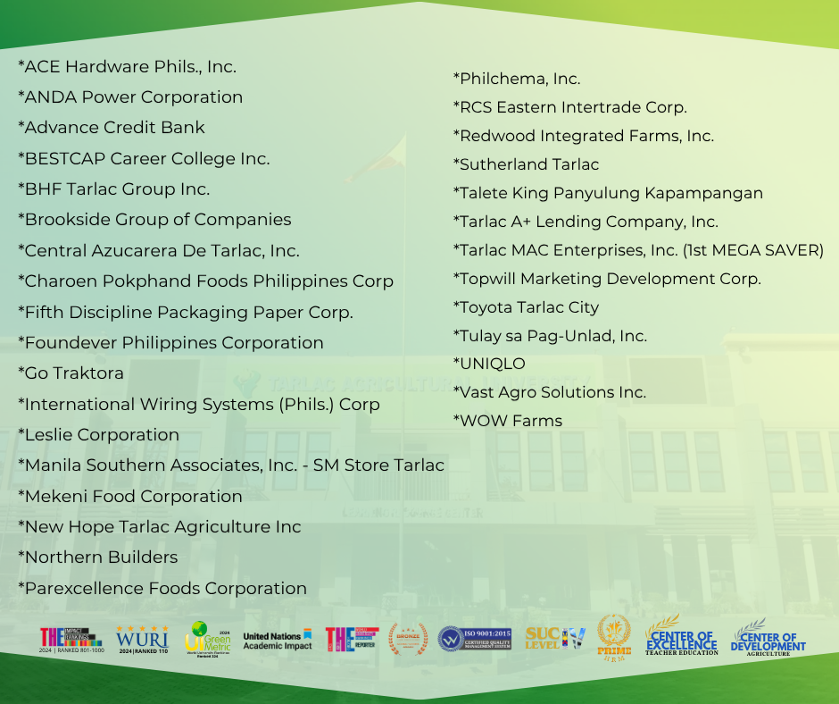 The TAU - SPO is thrilled to announce the upcoming University Career Fair on 3 June 2025 at the Gilberto O. Teodoro Multipurpose Center from 8:00 AM - 4:00 PM GMT+8 and invites ALL TAU graduands and alumni, regardless of gender, civil status, religion, disability, ethnicity or political affiliation.