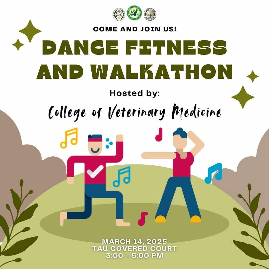 The College of Veterinary Medicine (CVM) invites the Tarlac Agricultural University (TAU) community to join the dance fitness and walkathon on Friday, 14 March, at the TAU Covered Court.