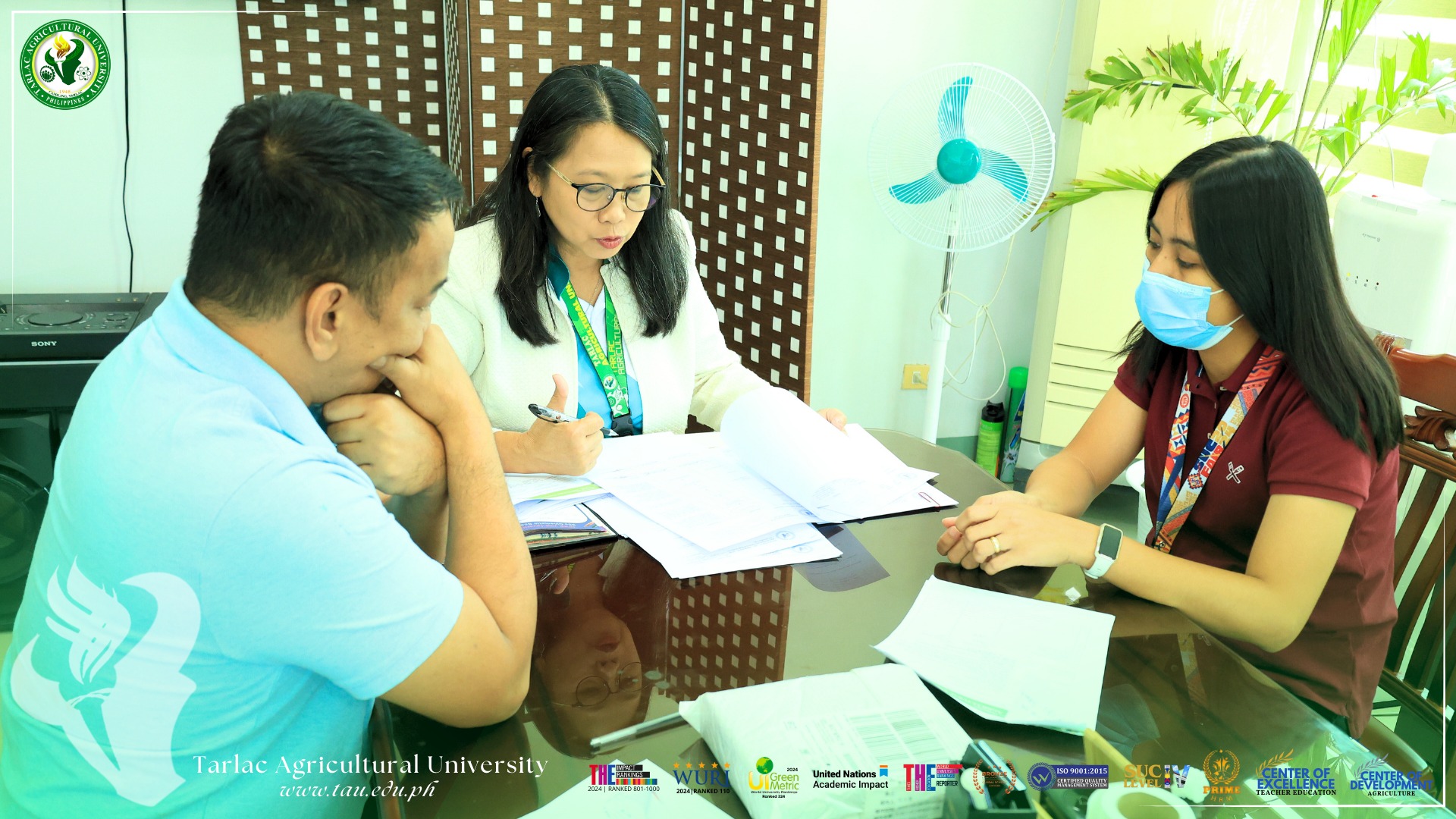 ๐๐๐๐๐๐๐๐ ๐๐ ๐๐๐๐ | Per University Memorandum No. 056, s. 2025, select staff from the Office of the Chief Administrative Officer (CAO) for Administration, the Office of the Vice President for Planning and Quality Assurance (OVPQA), and the Legal Unit have been designated as Public Assistance Officers of the Day to assist clients and guests during their transactions at Tarlac Agricultural University (TAU). The Help Desk is situated at the security post inside the Administration Building.