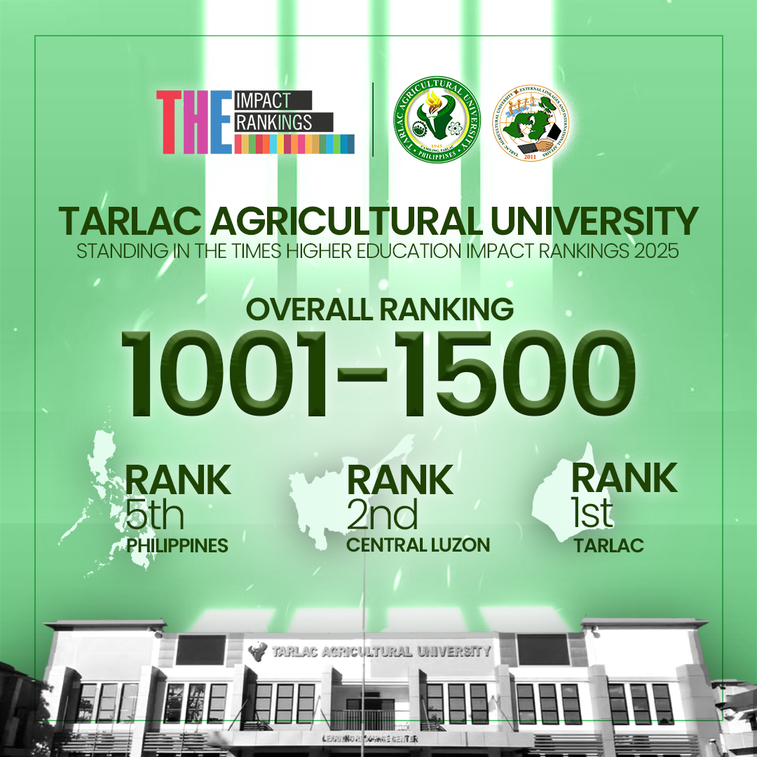 Tarlac Agricultural University (TAU) has demonstrated its community’s collective and consistent commitment to advancing the 17 Sustainable Development Goals (SDGs) in the recently released Times Higher Education (THE) Impact Rankings 2025, which evaluates institutional data from 2023.