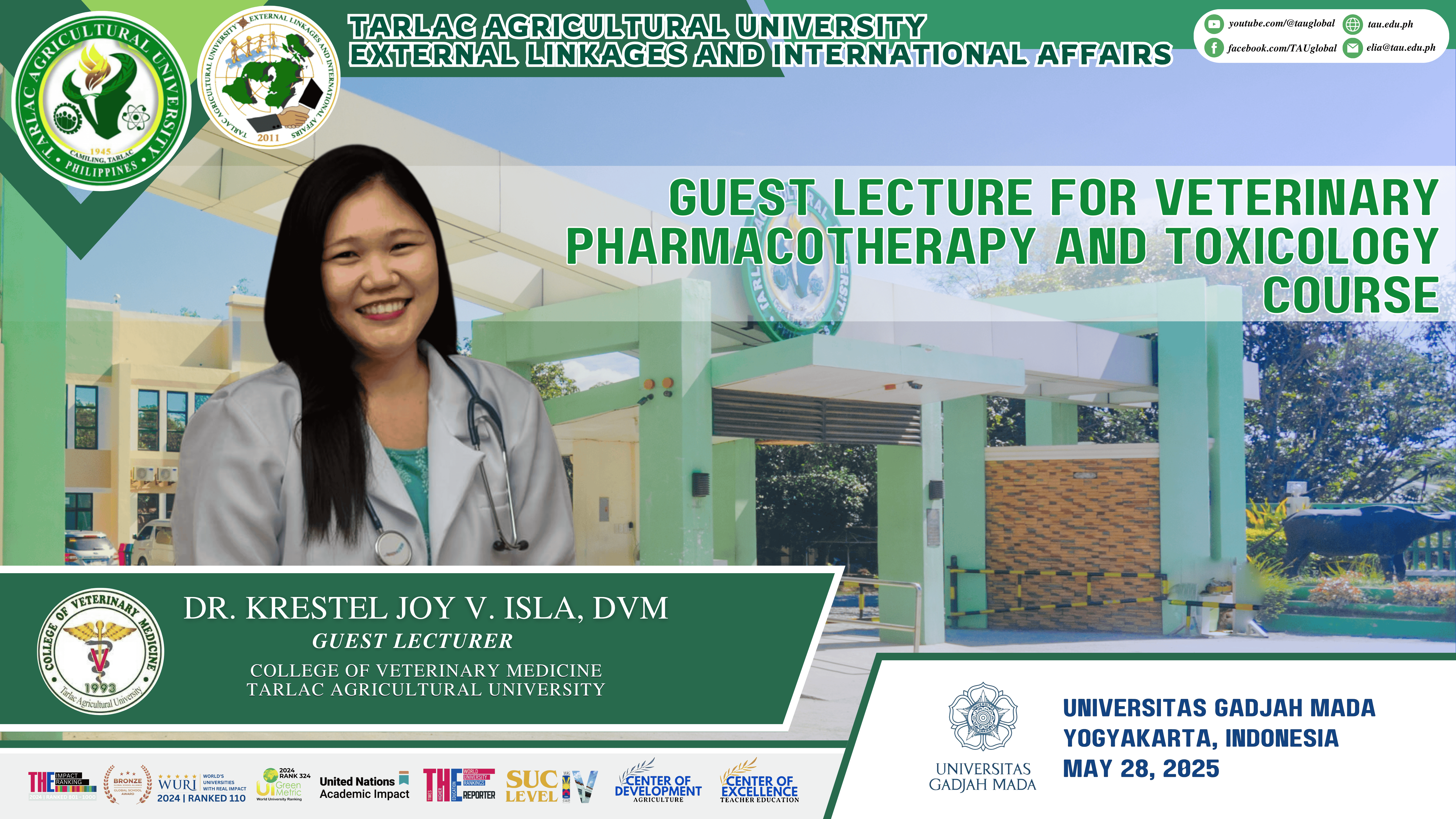 Dr. Krestel Joy V. Isla, a faculty member of the Tarlac Agricultural University (TAU) College of Veterinary Medicine (CVM), served as a guest lecturer on the topic Ethnoveterinary Medicine and Toxicology to undergraduate veterinary students at Universitas Gadjah Mada (UGM) on 28 May.