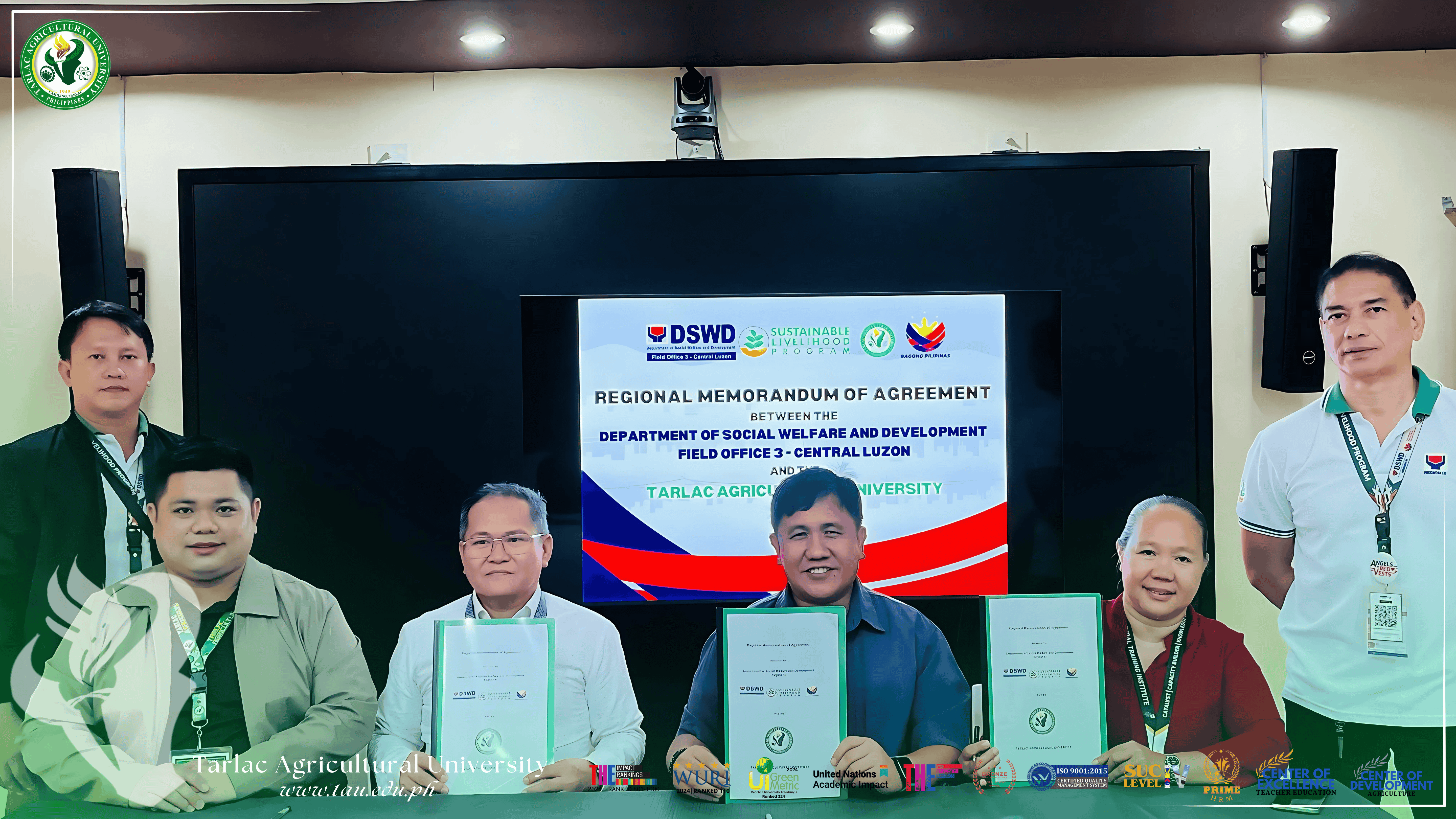 As part of the Regional Memorandum of Agreement (MOA) signed on 19 May in the City of San Fernando, Pampanga, the Department of Social Welfare and Development (DSWD) Field Office 3 and Tarlac Agricultural University (TAU) are teaming up to enhance the implementation of the Sustainable Livelihood Program (SLP) initiative in Region 3.