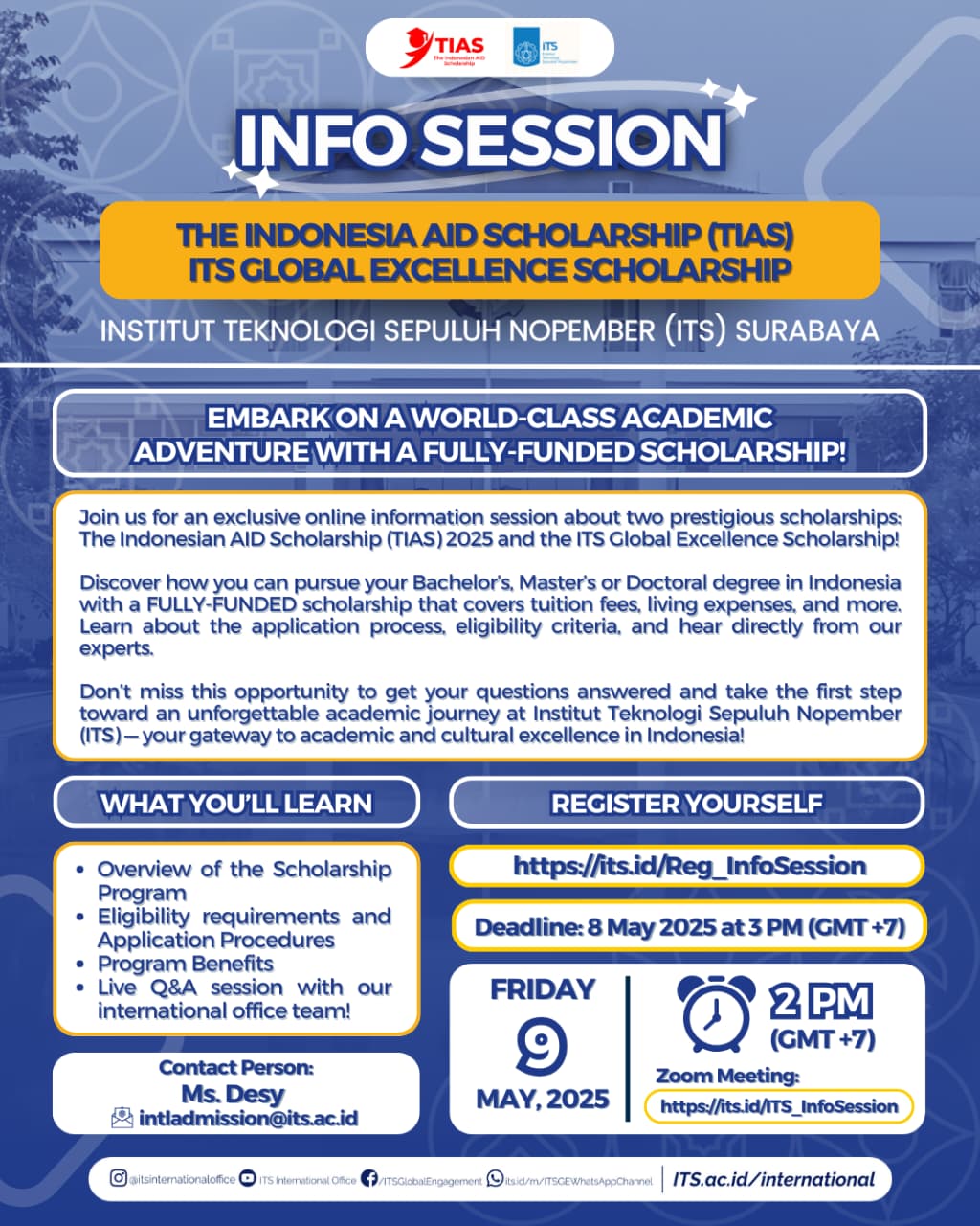 Institut Teknologi Sepuluh (ITS) Nopember, Indonesia is offering twenty (20) slots for participants who are undergraduate, masteral or doctoral students, as well as academic or non-academic staff of Tarlac Agricultural University (TAU), for the “Virtual CommTech Nusantara 2025: Exploring Indonesia’s Local Languages and Traditional Songs.” Said program will be held from 7-18 July 2025, Monday to Friday, from 3:00 to 6:00 PM (GMT+8) via Zoom.