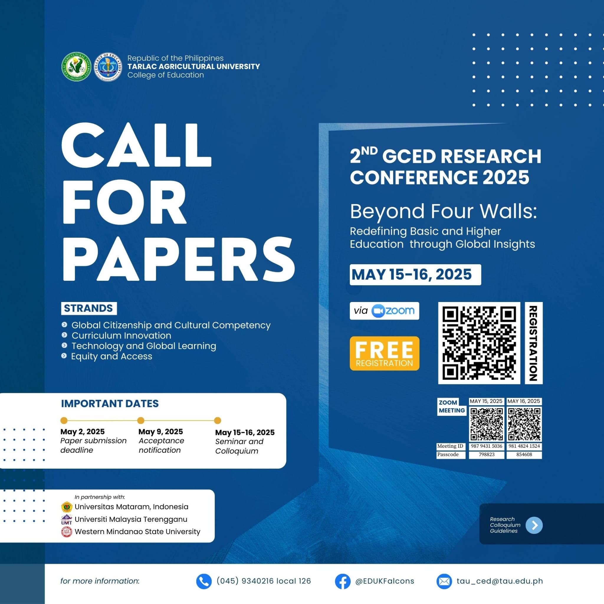 In partnership with Universitas Mataram (Indonesia), Universiti Malaysia Terengganu, and Western Mindanao State University, this virtual conference fosters meaningful dialogues on inclusive and transformative education. Whether you're exploring policy, pedagogy, or tech-driven solutions, your research can inspire change.