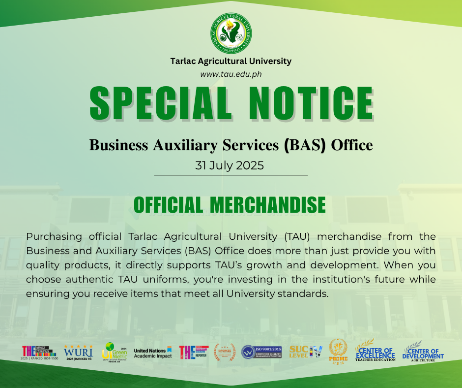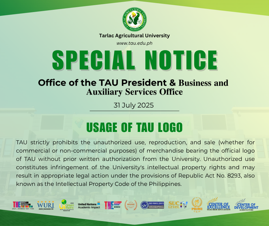 CAPTURED IN LENS | Tarlac Agricultural University (TAU) holds its regular flag-raising ceremony in front of the Learning Resource Center (LRC) on 4 August, with the Office of the Vice President for Finance and Administration (OVPFA) serving as host. During the program, the Human Resource Management Office (HRMO) recognizes birthday celebrators for the month of August, while Mr. Dante A. Revamonte, Chief Administrative Officer for Finance, and Ms. Ruth Thesa B. Franquera, Administrative Assistant from OVPFA, express appreciation to employees and the TAU Multipurpose Cooperative (MPC) who participated in the recent relief operations in response to the monsoon rains and typhoons.